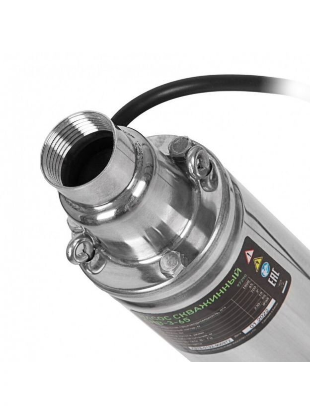 - Компактный диаметр 3" подходит для узких скважин, а мощность 700 Вт обеспечивает напор до 65 м