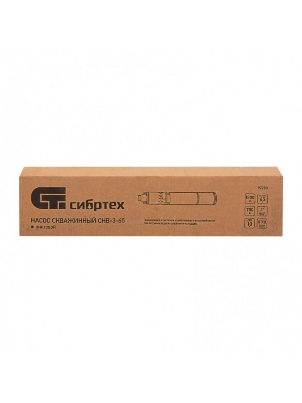 Насос скважинный, Сибртех, G2 '', нижний забор, 700 Вт, глубина погружения 80 м, максимальный напор 65 м, 1.8 м3/ч, термозащита, винтовой, диаметр 3", СНВ-3-65
