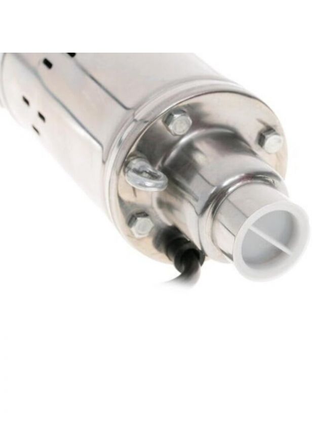 Данный насос называют червячным или шнековым насосом по виду насосной части. Забор воды – верхний. Для безопасного и удобного погружения модель оборудована специальными отверстиями для крепления страховочного троса.