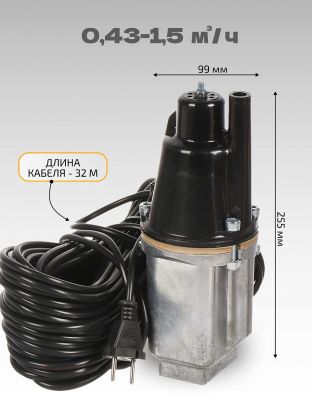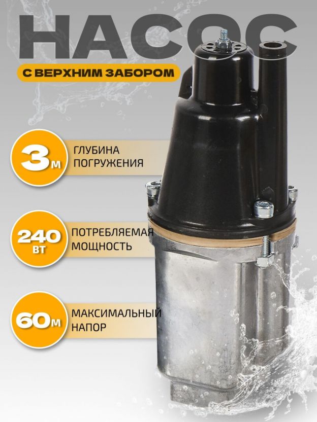Насос вибрационный, верхний забор, 32 м, 240 Вт, глубина погружения 3 м, максимальный напор 60 м, 1.5 м3/ч, Малыш-М