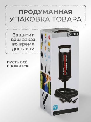 Насос воздушный ручной, 36 см, 3 насадки, средний, Intex, 68614