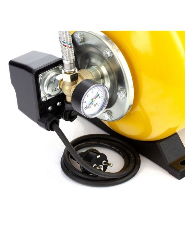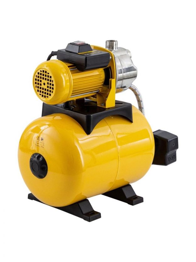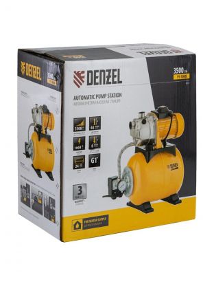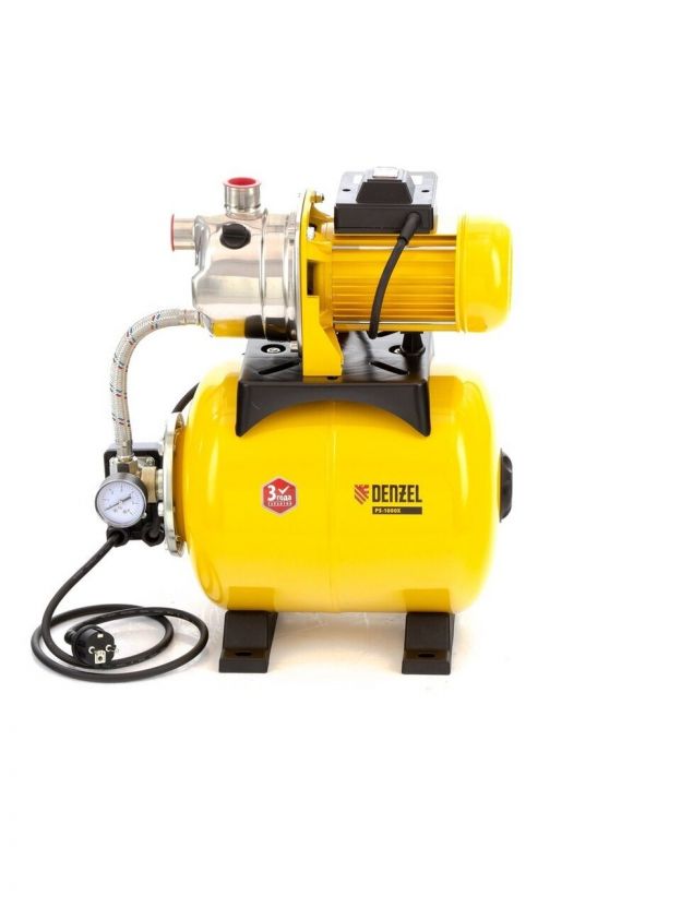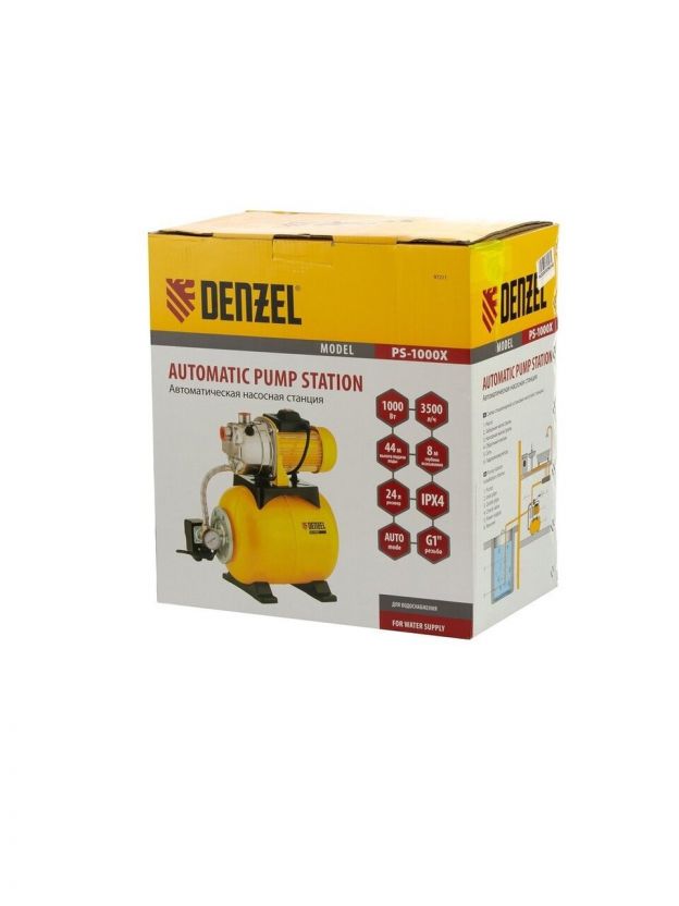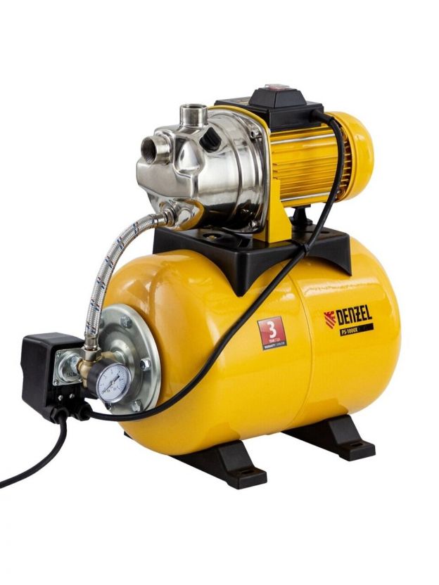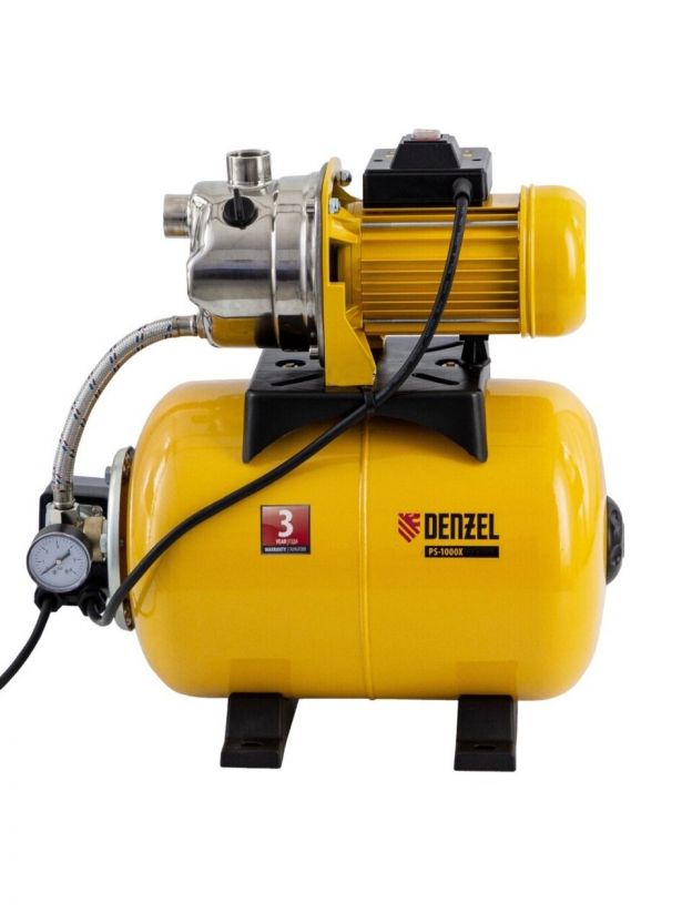 Насосная станция Denzel, 1000 Вт, глубина погружения 8 м, максимальный напор 44 м, 3.5 м3/ч, ресивер 24 л, нержавеющая сталь
