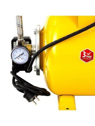• Чугунный корпус и ресивер 24 л — долговечность и устойчивость к коррозии для стабильной работы
