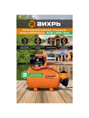 Насосная станция Вихрь, 1200 Вт, глубина погружения 9 м, максимальный напор 40 м, 4.2 м3/ч, АСВ-1200/24Н