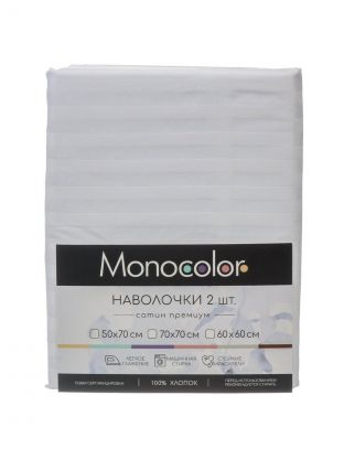 Наволочка 2 шт, Monocolor, страйп-сатин, 100% хлопок, 50 х 70 см, белая, 140 г/м2, 3182-1