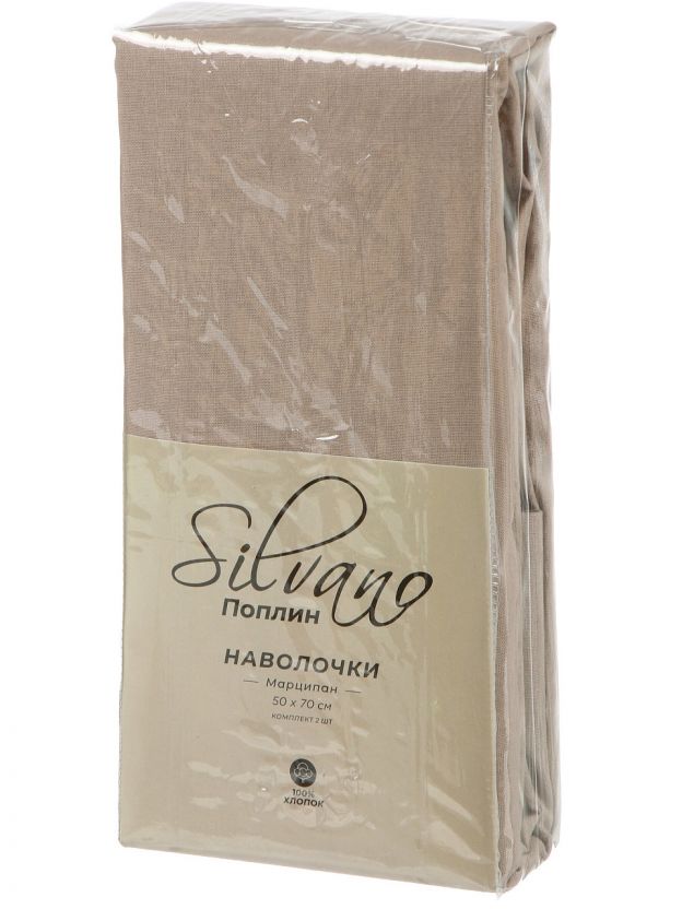 Наволочка 2 шт, Silvano, поплин, 100% хлопок, 50 х 70 см, бежевая, 110 г/м2, Узбекистан