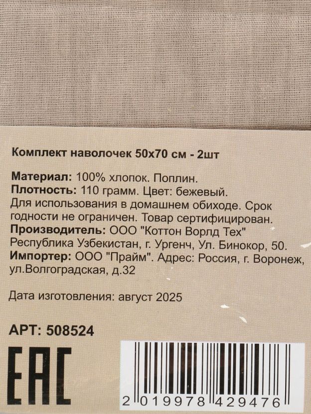 • Комплект из 2 наволочек в бежевом цвете — отличный выбор для дома, дачи или подарка.