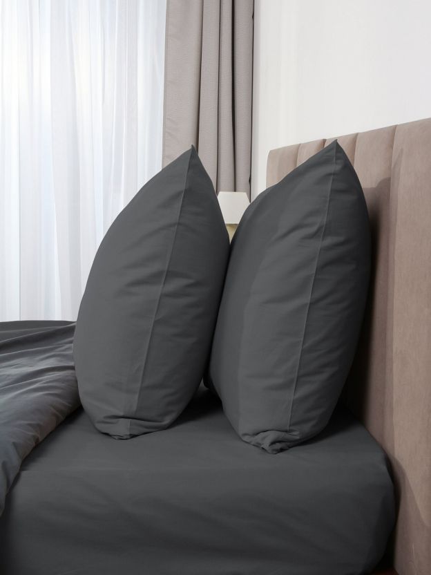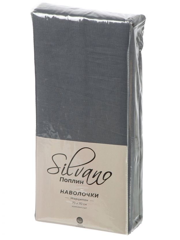 Наволочка 2 шт, Silvano, поплин, 100% хлопок, 70 х 70 см, темно-серая, 110 г/м2, Узбекистан