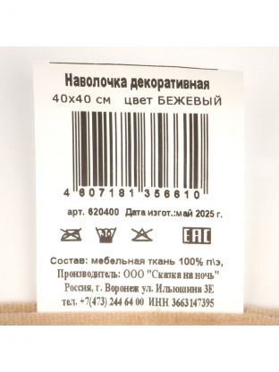 Наволочка декоративная Бежевый, 100% полиэстер, 40 х 40 см, бежевая