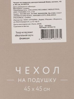 Наволочка декоративная Бохо 45x45 см из канваса: стильный акцент для интерьера, который легко стирается, подходит для подарка и защищает подушку от загрязнений.