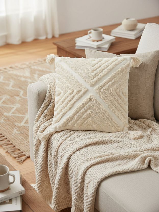 Часто спрашивают: подходит ли декоративная наволочка для дачи или подарка? Благодаря нейтральному бежевому цвету и прочной ткани, изделие органично впишется в любой интерьер — от скандинавского до этнического. В отличие от аналогов из синтетики, наволочка на молнии легко снимается для стирки, что удобно для семей с детьми или домашних питомцев. Как использовать: просто наденьте на подушку и сочетайте с другими текстильными элементами для создания гармоничного пространства.