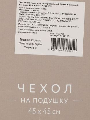 Декоративная наволочка Бохо 45x45 см — стильный акцент для интерьера: прочный канвас, универсальный бежевый, молния для удобства, быстрая доставка.