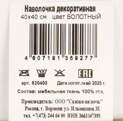 Наволочка декоративная Болотный, 100% полиэстер, 40 х 40 см