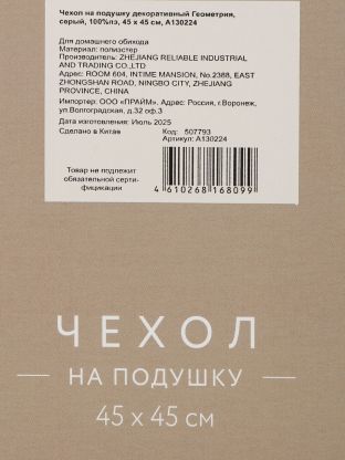 Наволочка декоративная Геометрия 45х45 см, серый — стильный акцент для гостиной или спальни, 100% полиэстер, долговечность и простота ухода.