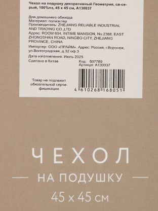 Наволочка декоративная Геометрия светло-серого цвета — это оптимальный выбор для тех, кто ищет, какую декоративную наволочку купить недорого для дачи или квартиры. Благодаря универсальному размеру 45х45 см и нейтральному серому оттенку, изделие гармонично впишется в современный или классический интерьер, добавит уюта и стиля. Используйте наволочку для обновления диванных подушек, создания акцента в гостиной или спальне, оформления зоны отдыха на балконе.