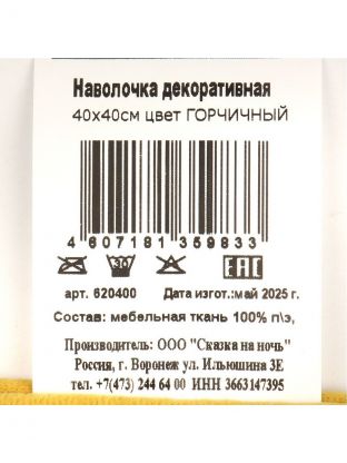 Наволочка декоративная Горчичный, 100% полиэстер, 40 х 40 см