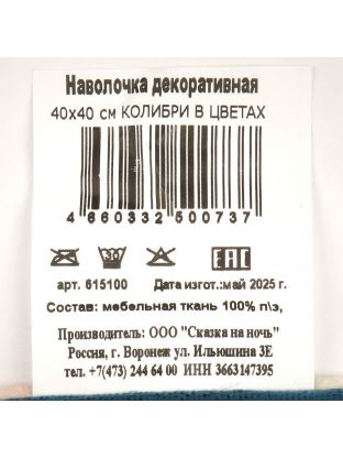 Наволочка декоративная "Колибри в цветах" — стильное решение для обновления интерьера гостиной или спальни. Яркий принт с колибри и цветами добавит уюта и свежести в любой дом. Прочный и приятный на ощупь материал из 100% полиэстера обеспечивает легкость ухода и долговечность. Размер 40х40 см идеально подходит для стандартных подушек. Молния делает смену наволочки быстрой и удобной.