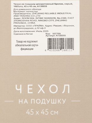 • Размер 45х45 см и износостойкий 100% полиэстер — легко стирать, не теряет форму, подходит для стандартных подушек.