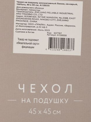 Если вы ищете, что лучше для обновления интерьера без лишних затрат, обратите внимание на этот вариант: полиэстер устойчив к износу, не требует сложного ухода, а светло-серый цвет визуально расширяет пространство. В отличие от хлопковых или льняных аналогов, этот материал менее подвержен сминанию и дольше сохраняет презентабельный вид. Наволочка подходит для частого использования дома, на даче или в офисе, а также станет практичным подарком на новоселье.
