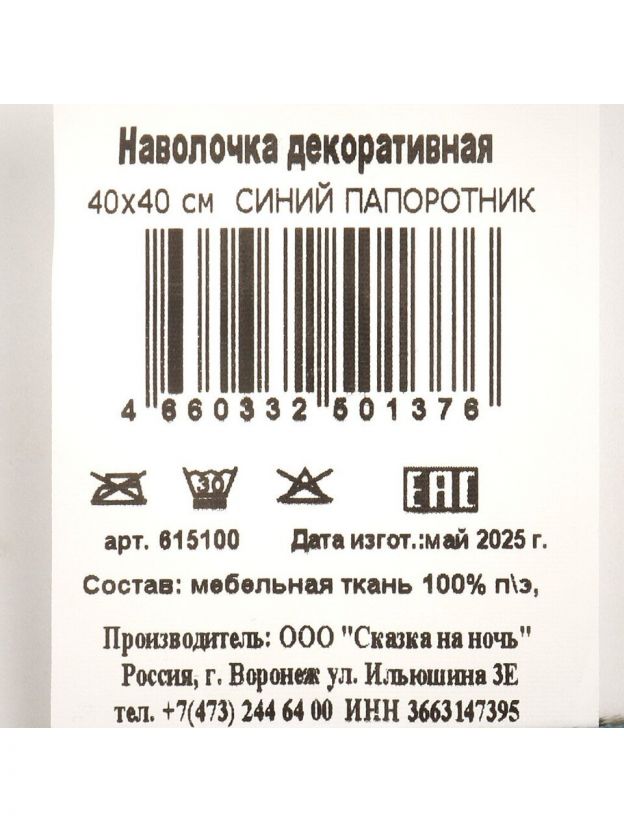 Наволочка декоративная "Синий папоротник" — стильное решение для обновления интерьера гостиной или спальни. Яркий синий оттенок и современный дизайн подчеркнут индивидуальность любого пространства. Компактный размер 40 х 40 см идеально подходит для диванных или кресельных подушек. Прочный и приятный на ощупь полиэстер обеспечивает долговечность и легкость ухода. Молния позволяет быстро снимать и надевать наволочку.