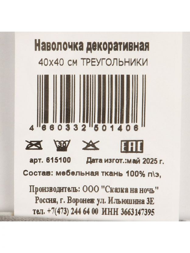 Наволочка декоративная Треугольники, 100% полиэстер, 40 х 40 см