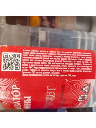 При попадании нейтрализатора ржавчины на кожу — смыть теплой водой с мылом. Работать в резиновых перчатках в хорошо проветриваемом помещении.