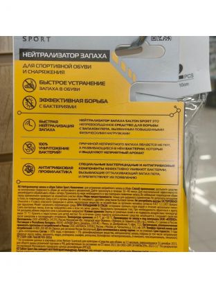 Нейтрализатор запаха Salton - это незаменимый аксессуар для каждого спортсмена, который хочет сохранить свою обувь свежей и чистой на протяжении всей тренировки. Он поможет вам избавиться от неприятных запахов и продлить срок службы вашей обуви.