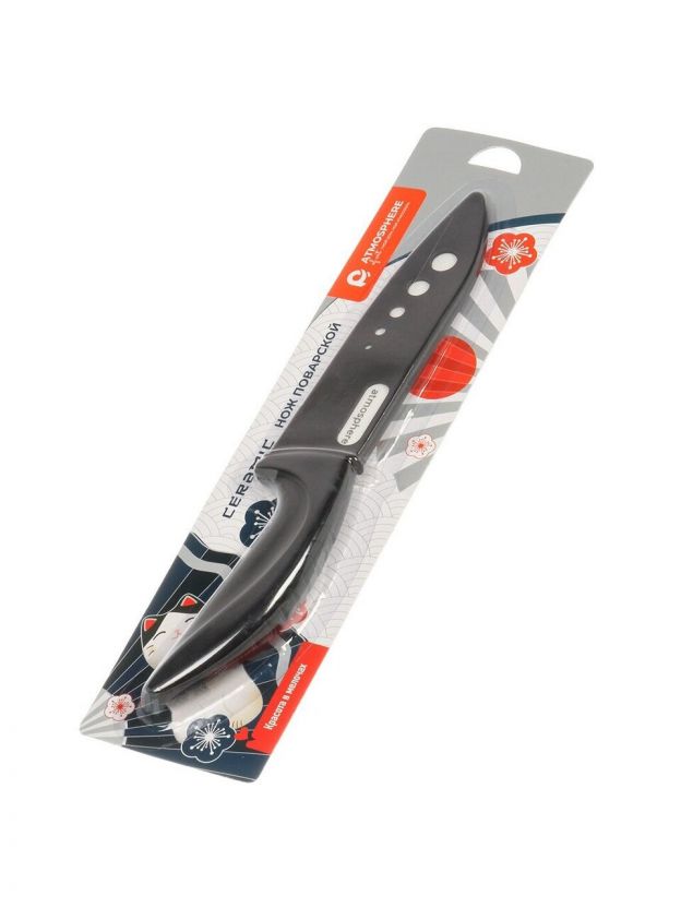 Поварской нож Atmosphere Ceramic – это не просто кухонный инструмент, а залог аккуратной и качественной нарезки. Легкий вес и эргономичная форма делают его незаменимым помощником для домашних кулинаров и профессионалов. Благодаря керамическому лезвию продукты не темнеют на срезе, сохраняя свежесть и аппетитный вид блюд. Чехол в комплекте обеспечивает дополнительную безопасность при хранении и транспортировке, что особенно удобно для поездок на дачу или пикник.