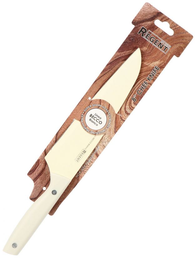Шеф-нож Regent Inox Becco Bianco 20 см — точная нарезка, долговечная сталь, удобная рукоятка: идеальный выбор для кухни дома и на даче.