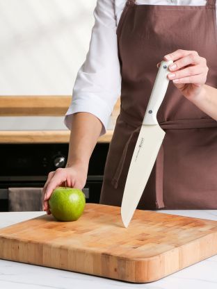 • Профессиональная острота и баланс — шеф-нож для уверенного контроля нарезки любых продуктов.