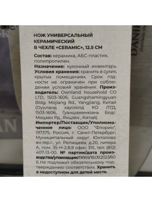 Нож кухонный Atmosphere, Ceramic, универсальный, в чехле, керамика, 12.5 см, рукоятка пластик, AT-K1874