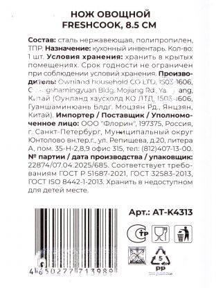 Нож кухонный Atmosphere, FreshCook, для овощей, нержавеющая сталь, 8.5 см, нейлон, AT-K4313