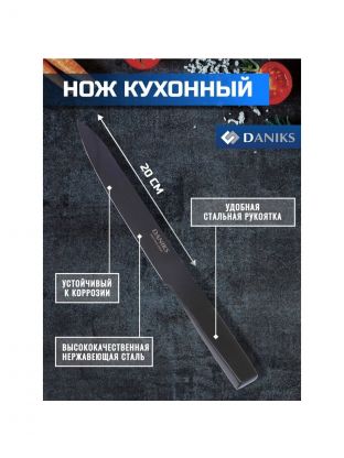 Нож кухонный Daniks, Блэк Стайл, разделочный, нержавеющая сталь, 20 см, рукоятка сталь, YW-A369-SL