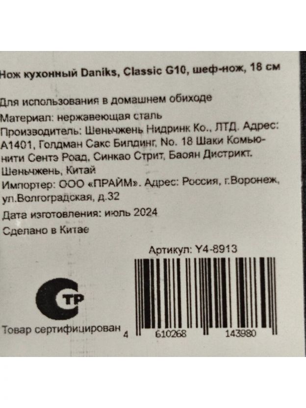 Изделие поставляется в подарочной упаковке, что делает его отличным выбором для подарка. Нож Daniks Classic G10 станет прекрасным дополнением к любой кухне, сочетая в себе функциональность и эстетичность.