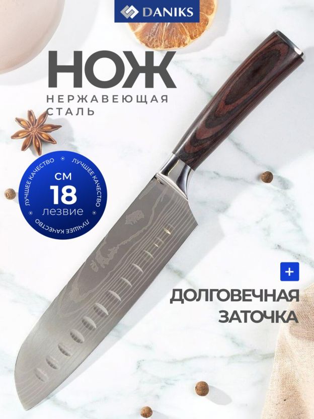 Нож кухонный Daniks, Classic G10, сантоку, нержавеющая сталь, 18 см, рукоятка дерево, Y4-8913