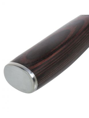 Рукоятка из дерева не только придает ножу стильный и элегантный вид, но и обеспечивает комфортный и надежный захват. Это делает использование ножа максимально удобным даже при длительной работе. Благодаря цельнометаллической конструкции, нож обладает высокой прочностью и долговечностью, что гарантирует долгий срок службы без потери качества.