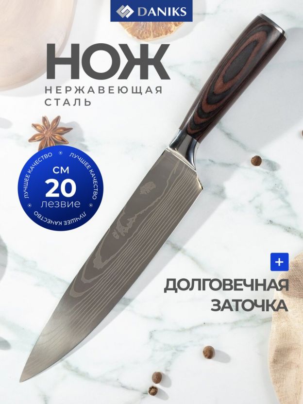 Нож кухонный Daniks, Classic G10, шеф-нож, нержавеющая сталь, 20 см, рукоятка дерево, Y4-8912