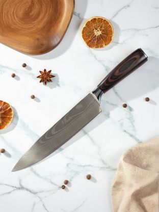 Рукоятка из дерева не только придает ножу элегантный вид, но и обеспечивает комфортный и надежный хват. Это особенно важно при длительной работе, когда требуется максимальная точность и контроль. Классический дизайн и эргономичность делают этот нож не только функциональным, но и эстетически привлекательным дополнением к любой кухне.