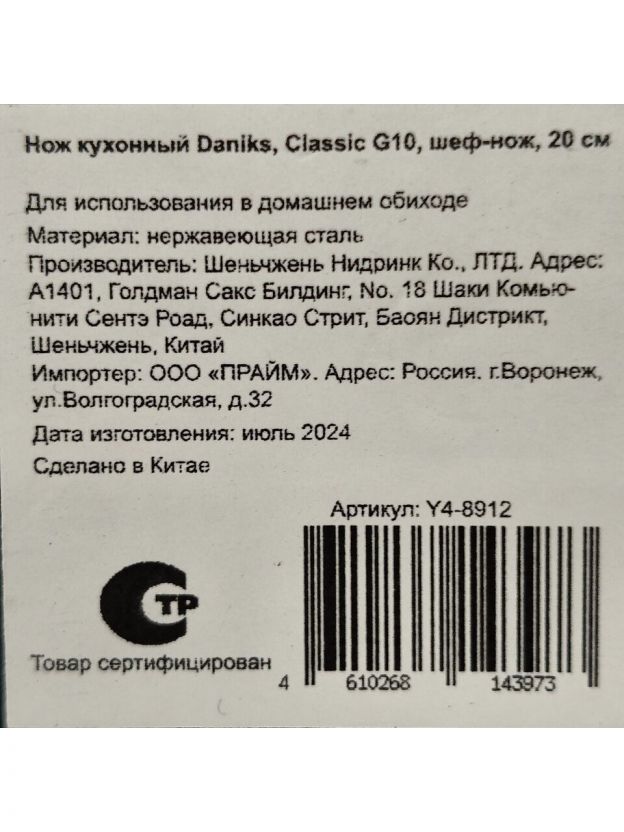 Откройте для себя искусство кулинарии с кухонным ножом Daniks Classic G10. Этот шеф-нож станет надежным помощником на вашей кухне, обеспечивая превосходное качество резки и удобство в использовании. Изготовленный из высококачественной нержавеющей стали, он сочетает в себе стиль и функциональность, что делает его идеальным выбором для любого повара, будь то профессионал или любитель.