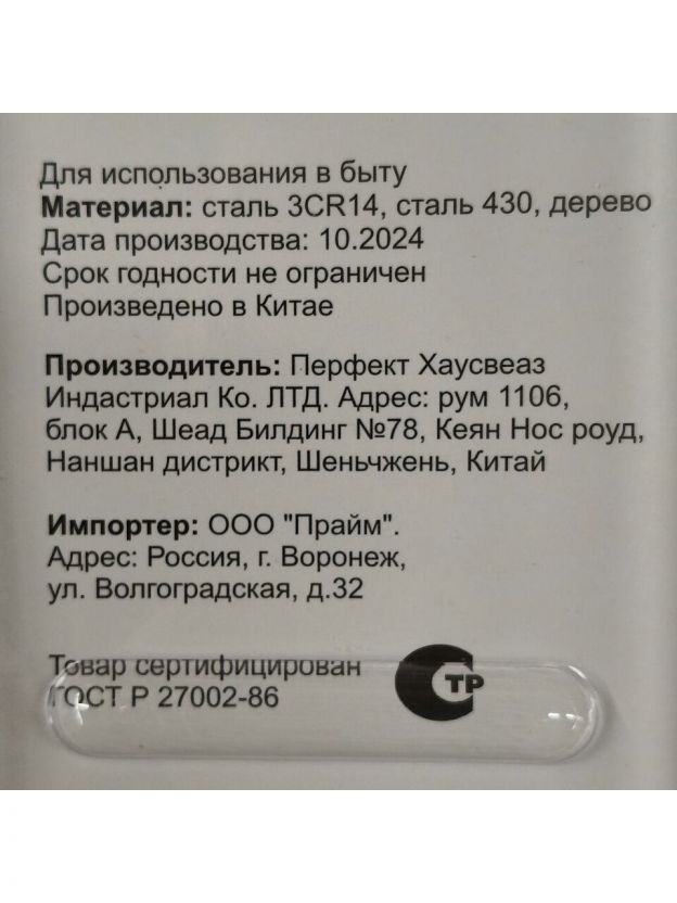 • эргономичный дизайн: деревянная рукоятка обеспечивает комфортный захват и контроль при нарезке;