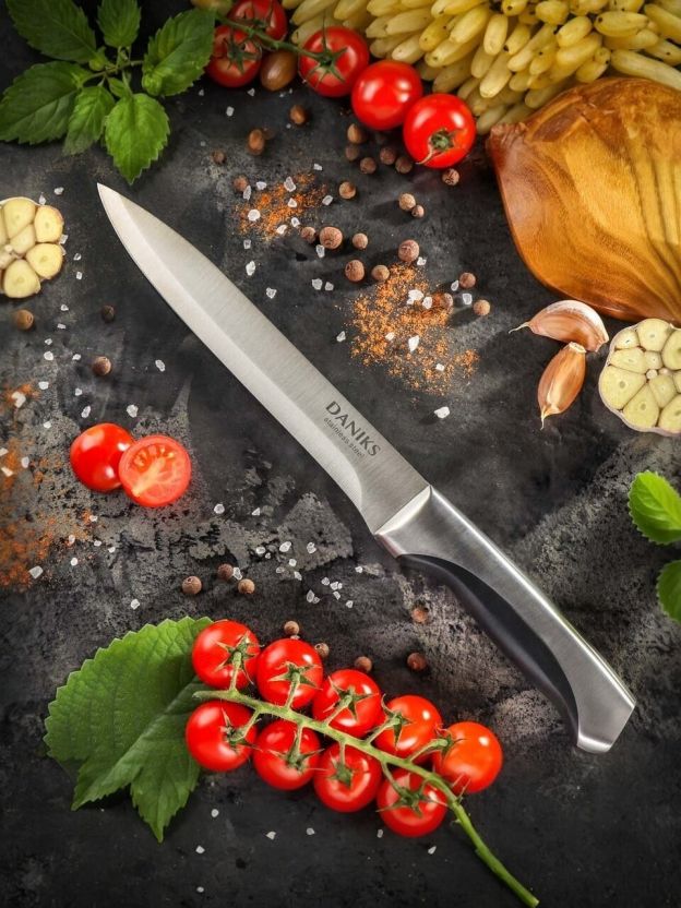 В отличие от обычных ножей с пластиковыми или деревянными ручками, модель Daniks Мрамор полностью выполнена из стали — это не только долговечно, но и гигиенично. Нож не впитывает запахи и легко очищается, хотя его не рекомендуется мыть в посудомоечной машине. Пользователи часто интересуются: «Подходит ли такой нож для дачи или подарка?» — да, благодаря универсальному дизайну и надежности нож отлично смотрится в любом интерьере и станет полезным презентом.