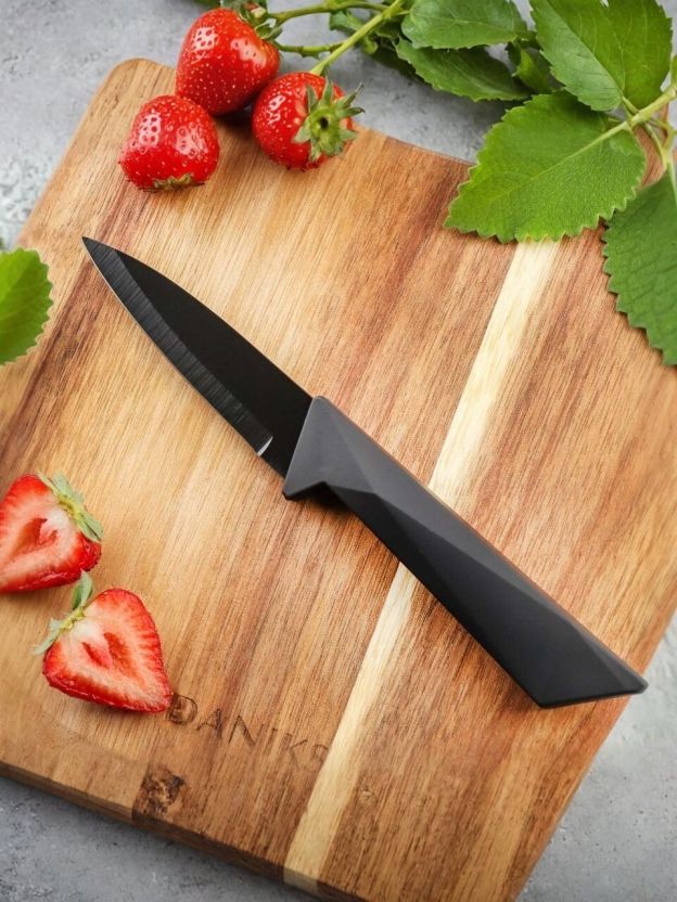 Нож кухонный Daniks, Обсидиан, для овощей, нержавеющая сталь, 9 см, рукоятка пластик, YW-A175-PA