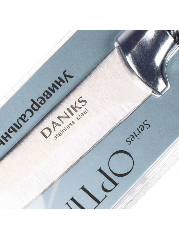 Нож Daniks изготовлен из высококачественной нержавеющей стали. Универсальный кухонный нож подойдет для нарезки мяса, любых типов овощей, фруктов, сыров и других продуктов. Ручка сделана из пластика, нож лежит в руке удобно и не скользит.