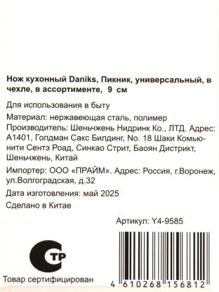 Кухонный нож Daniks «Пикник» — универсальный инструмент для быстрой и аккуратной нарезки овощей, фруктов, сыра, хлеба и других продуктов. Благодаря компактному размеру (9 см) и прочному лезвию из нержавеющей стали, нож легко помещается в сумку или рюкзак, а пластиковый чехол защищает от случайных порезов. Это отличный выбор для тех, кто ищет недорогой универсальный нож для дачи, пикника или небольшой кухни.