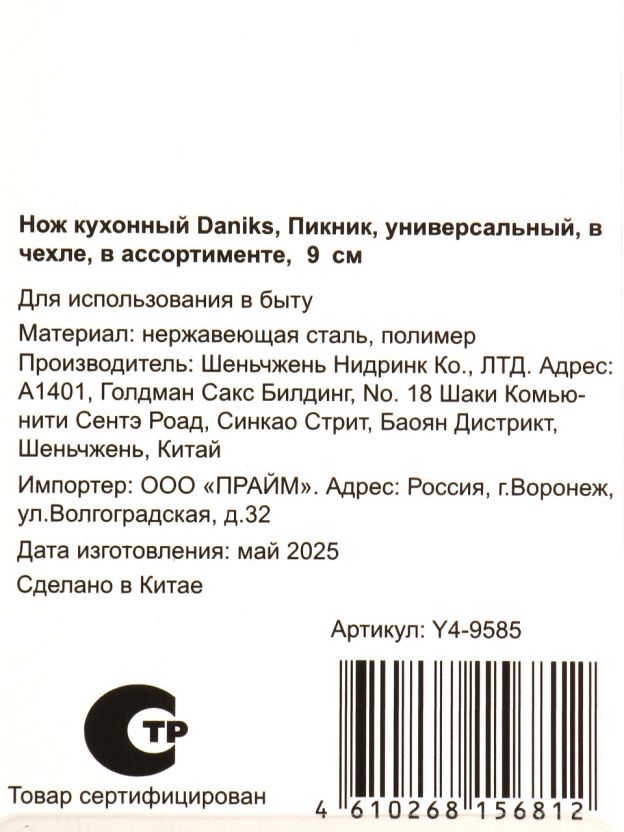 Универсальный кухонный нож Daniks «Пикник» 9 см: компактное решение для дома, дачи и пикника — удобно брать с собой, безопасно хранить в чехле.
