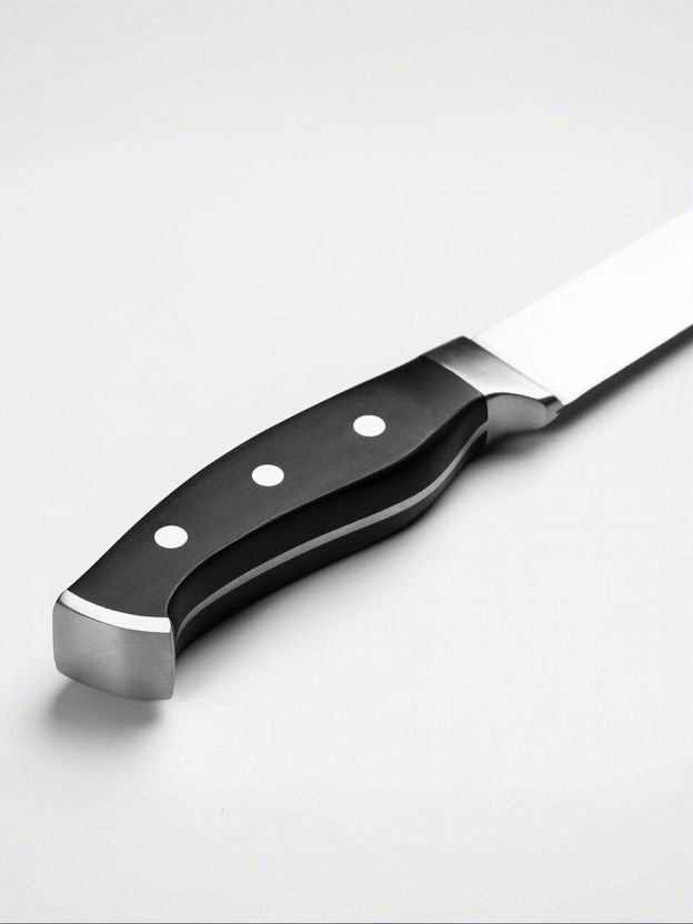 • универсальность: 20-сантиметровое лезвие подходит для нарезки различных продуктов;