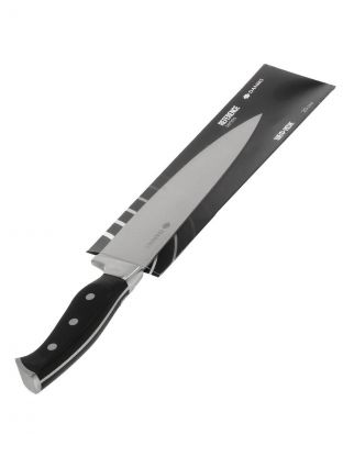 Шеф-нож Daniks Reference обладает лезвием длиной 20 см, выполненным из нержавеющей стали, что гарантирует долгий срок службы и устойчивость к коррозии. Двусторонняя заточка лезвия позволяет совершать точные и аккуратные разрезы, что особенно важно для профессиональных и домашних поваров. Деревянная рукоятка добавляет изделию элегантности и обеспечивает комфортный захват, что делает использование ножа удобным и безопасным.