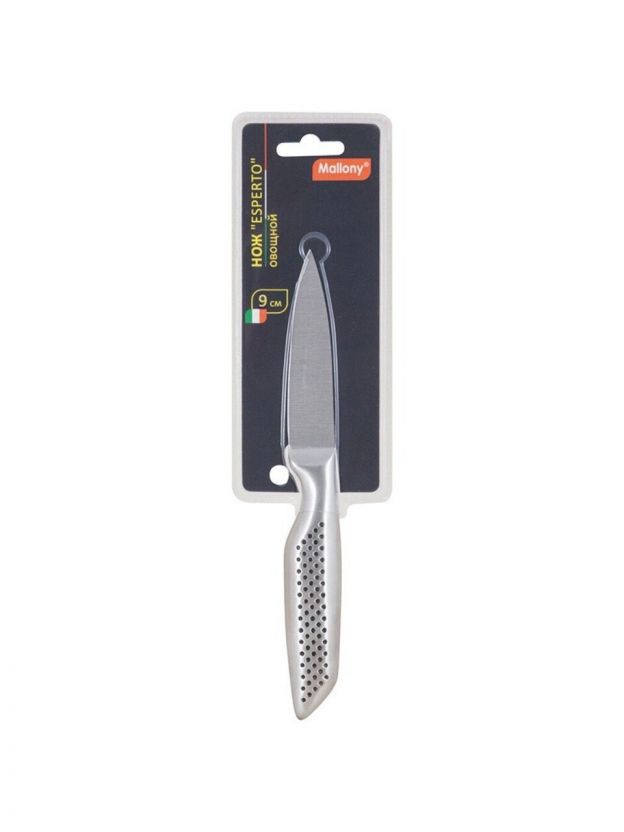 Кухонный нож Mallony Esperto для овощей 9 см — точная нарезка, долговечность и стильный цельнометаллический дизайн по доступной цене для дома и дачи.