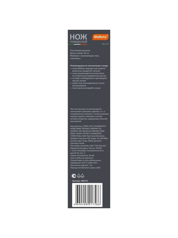 Если вы ищете, чем отличается этот нож от других поварских ножей, обратите внимание на сочетание доступной цены и профессиональных характеристик. Он не требует особого ухода, устойчив к ржавчине и не впитывает запахи. Используйте его как на домашней кухне, так и на даче или для подарка — универсальность и долговечность делают Mallony MAL-01P отличным выбором.