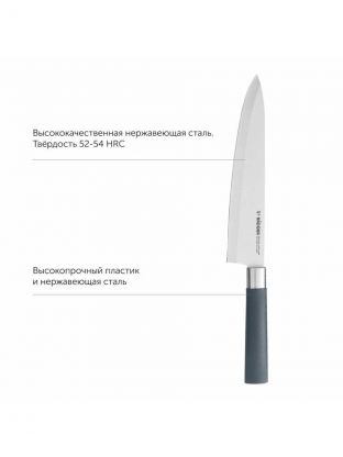Нож кухонный Nadoba, Haruto, поварской, нержавеющая сталь, 20.5 см, рукоятка пластик, 723513